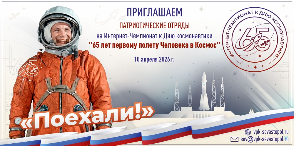 В честь Дня космонавтики Военно-патриотический клуб "Севастополь" (г.Екатеринбург) организует научно-популярные уроки по истории космонавтики, встречи с интересными специалистами, а также Интернет-Чемпионат для отрядов и команд школ, колледжей и университетов.