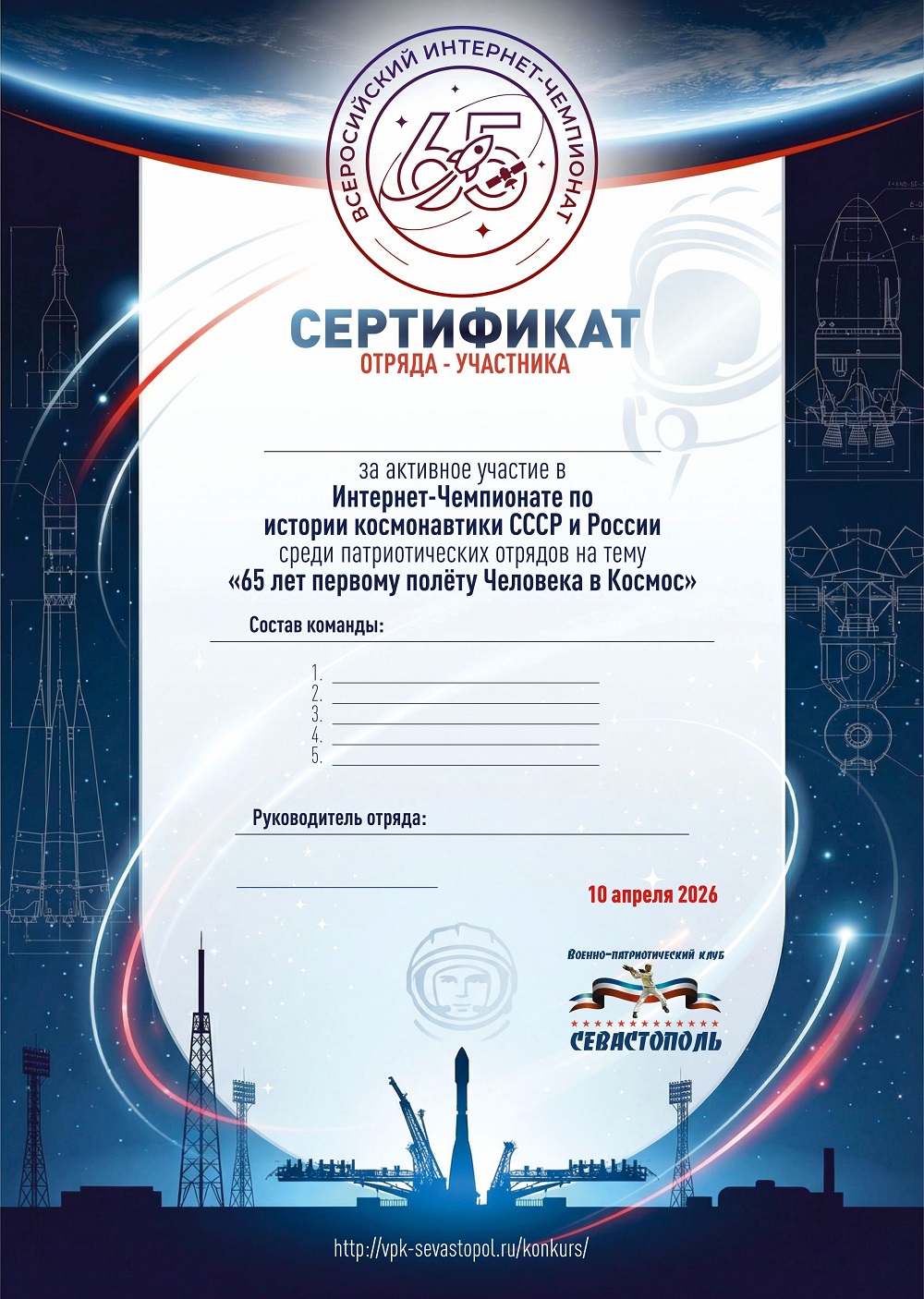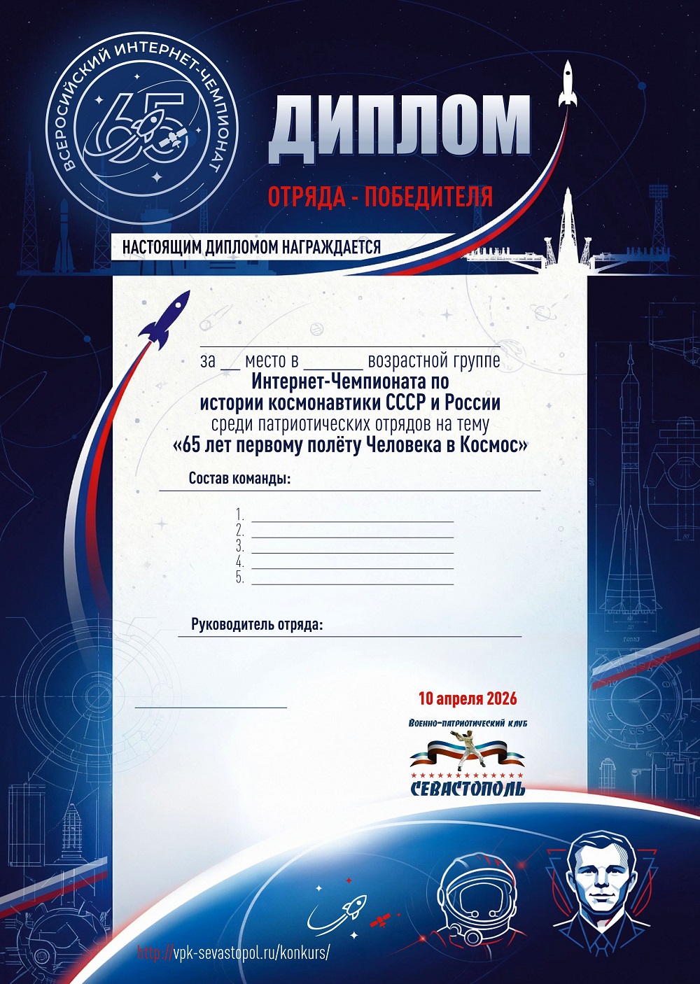 10 апреля 2026 года - Интернет-Чемпионат в честь Дня космонавтики