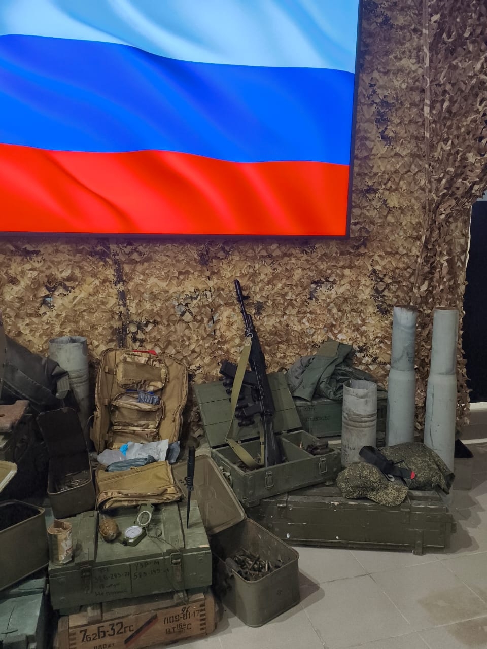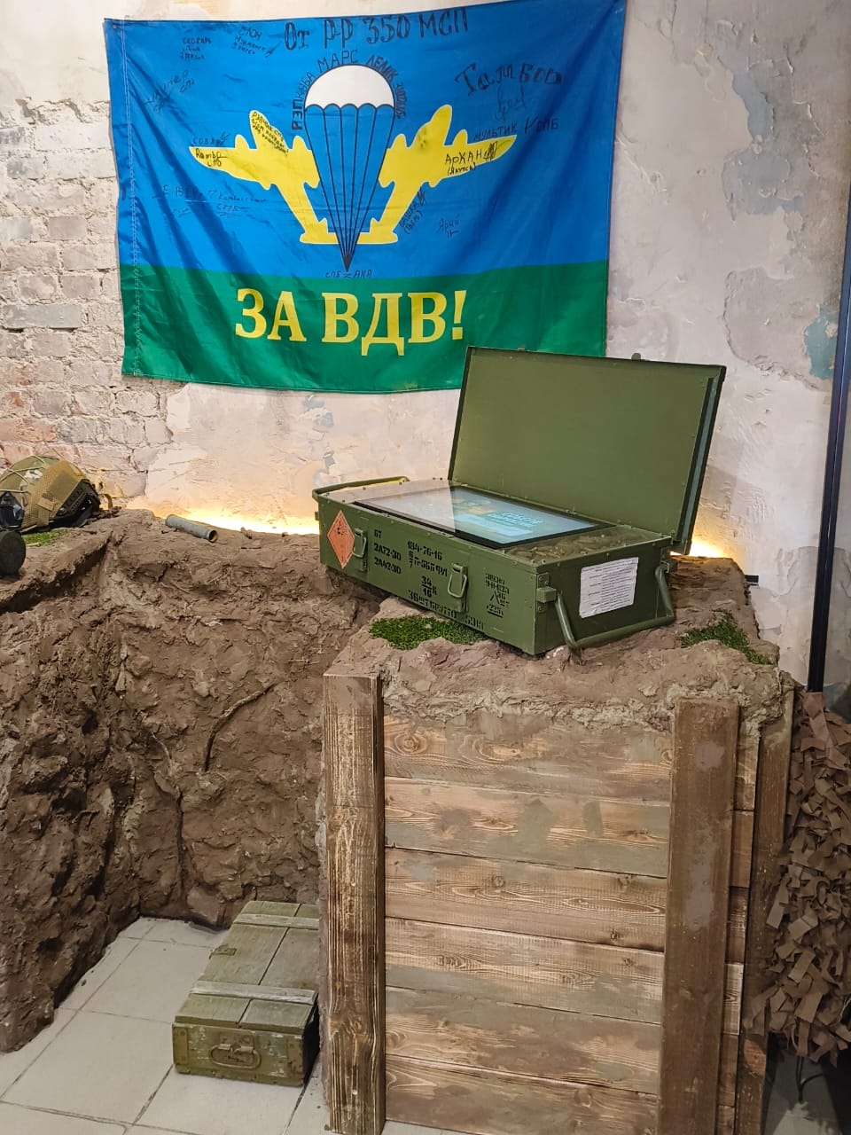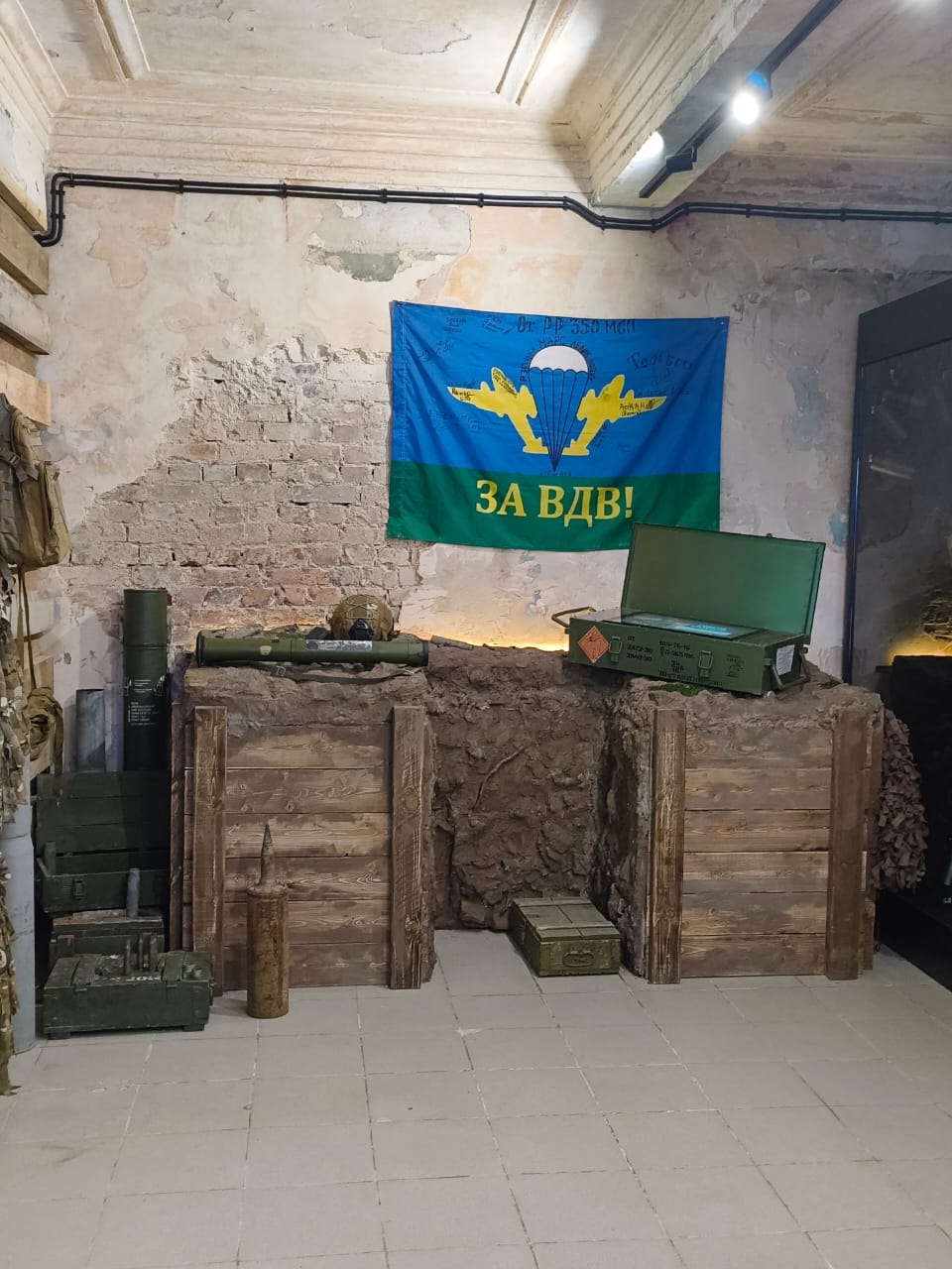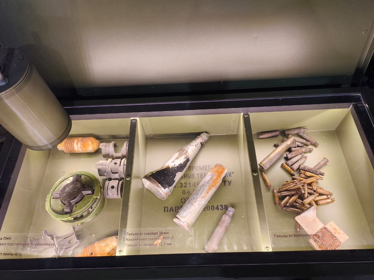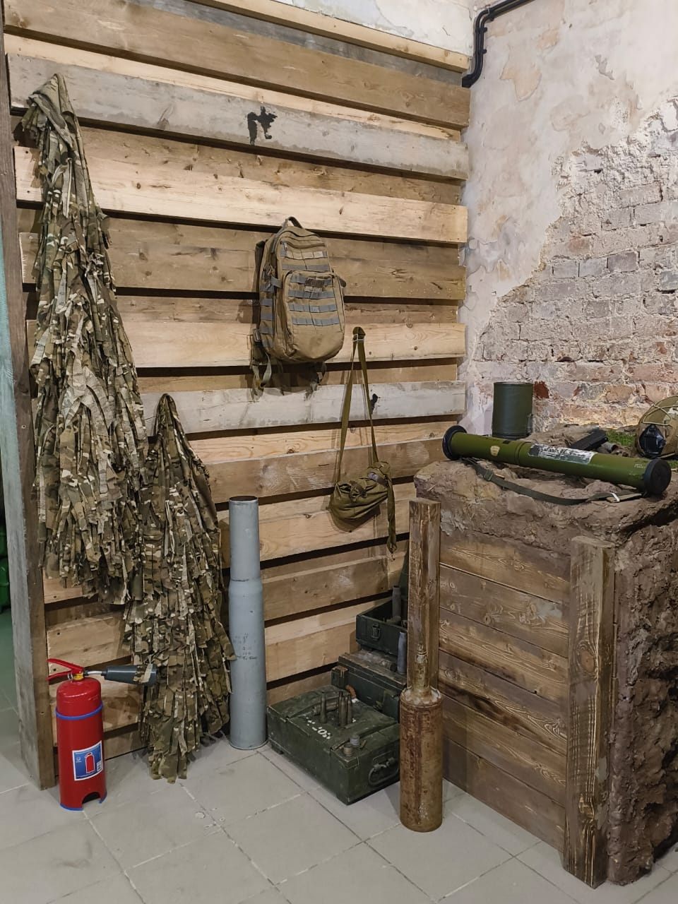 Здесь представлены образцы мин , дровнов, патроны, модернизированное оружие старого образца ,  предметы маскировки и обмундирования, а также элементы быта, которые рассказывают о повседневной жизни участников СВО.