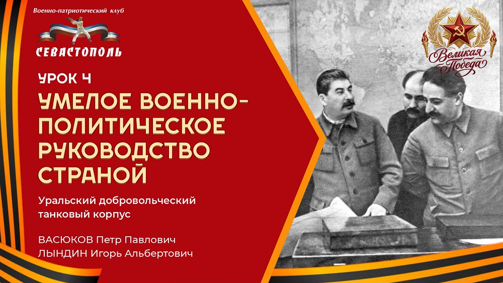 Урок N4 "Умелое военно-политическое руководство страной"Дата: 24 апреля 2026 года Начало: 14-00 часов по московскому времени Лектор: Васюков Пётр Павлович Анонс урока: На предстоящем уроке мы обратимся к одной из ключевых тем истории Великой Отечественной войны — роли высшего руководства СССР, наркомов и дипломатов в достижении Победы. Вы узнаете, как в тяжелейших условиях войны была выстроена эффективная система управления государством, обеспечившая слаженную работу фронта и тыла. Особое внимание уделим: