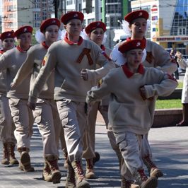 Торжественным маршем перед памятником прошли военно-патриотические клубы и юнармейские отряды, в ряду которых были также и наши воспитанники.