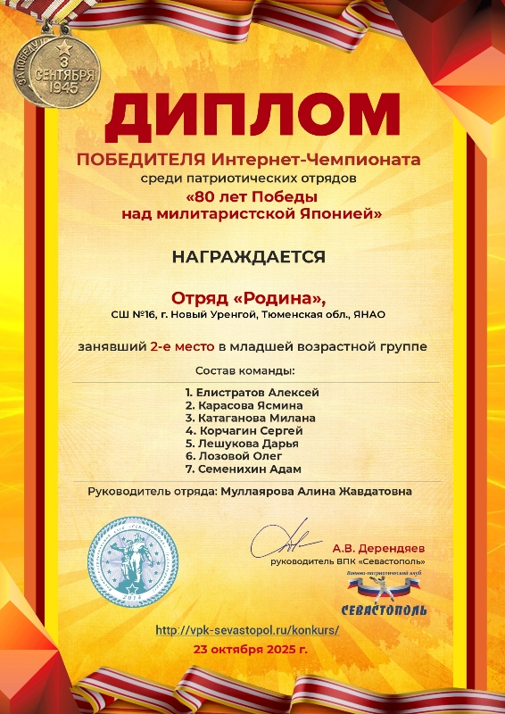 Отряд "Родина", СШ N 16, г. Новый Уренгой, Тюменская область, ЯНАО