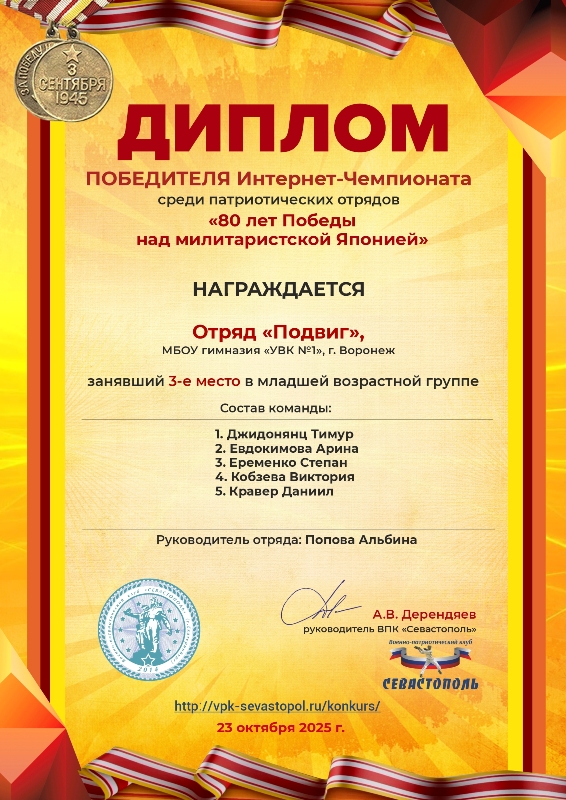 Юнармейский отряд "Подвиг", МБОУ гимназия "УВК N 1", г. Воронеж