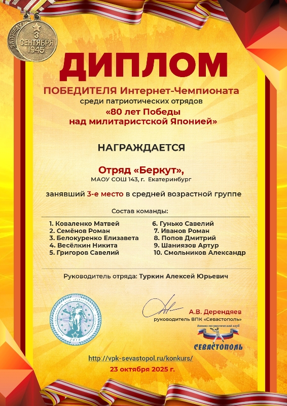 Юнармейский отряд "Беркут", СОШ N 143, г. Екатеринбург