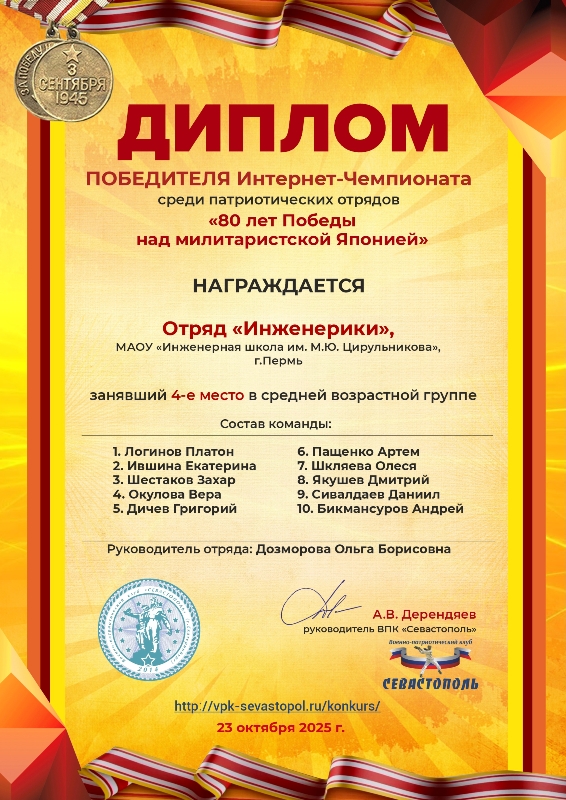 Отряд "Инженерики", Инженерная школа им.М.Ю.Цирульникова, г. Пермь