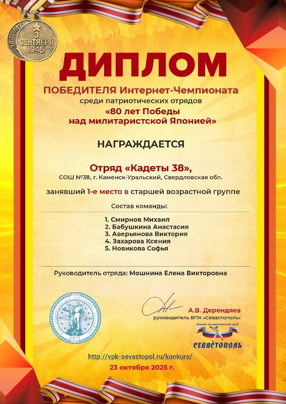 Отряд "Кадеты 38", СОШ N 38,г. Каменск - Уральский, Свердловская область