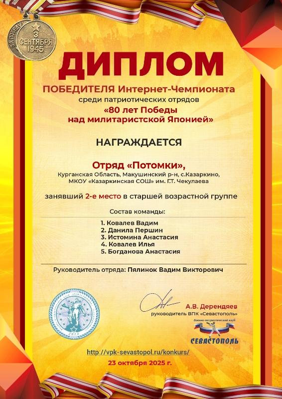 Отряд "Потомки", Казаркинская СОШ им. Г.Т.Чекулаева, с.Казаркино, Курганская область