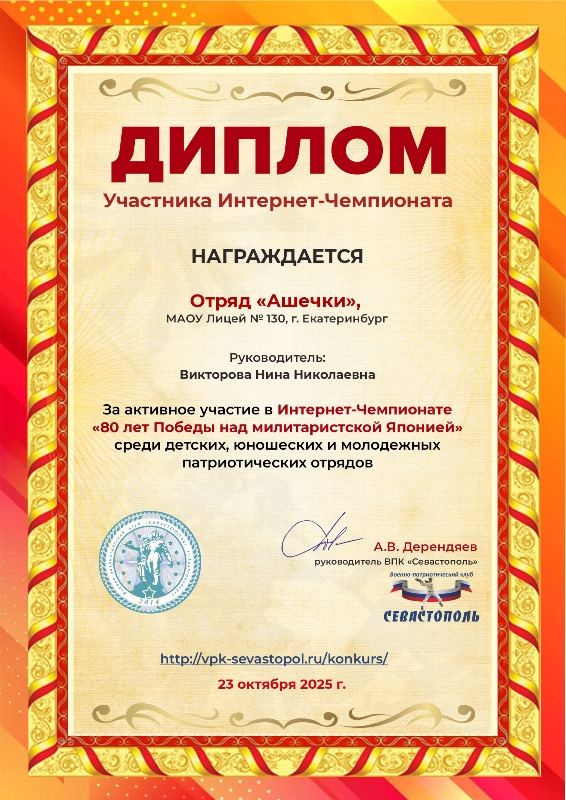 Отряд "Ашечки", МАОУ Лицей N130, г. Екатеринбург