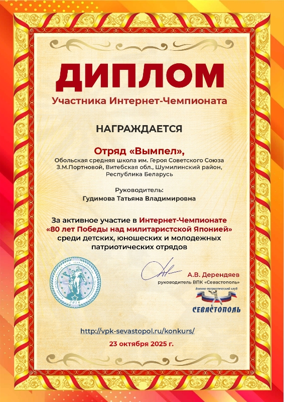 Отряд "Вымпел", Обольская средняя школа им. Героя Советского Союза З.М.Портновой, Шумилинский район, Витебская область, Республика Беларусь