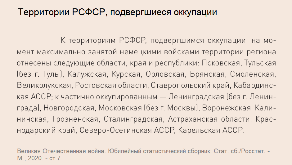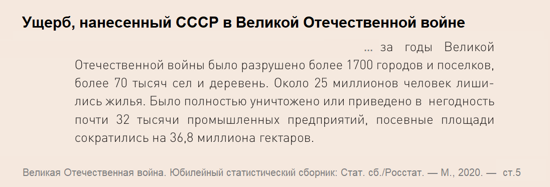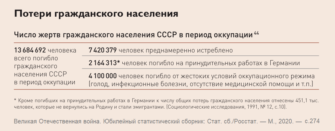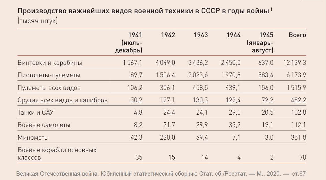 Великая Отечественная война. Юбилейный статистический сборник: Стат. сб./Росстат. - М., 2020. - ст.68