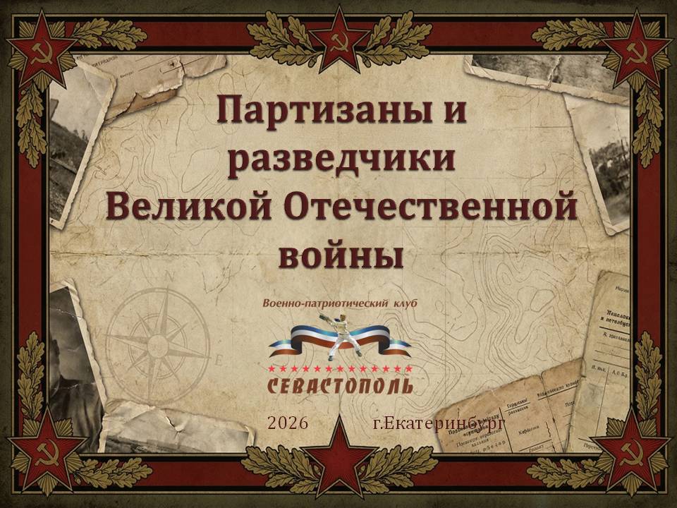 26.02.2026 руководитель ВПК "Севастополь" Дерендяев А.В. рассказал на встрече в Библиотеке N21 ученикам 8 класса гимназии 176 г. Екатеринбурга о подвиге партизан, подпольщиков и разведчиков в годы Великой Отечественной войны.