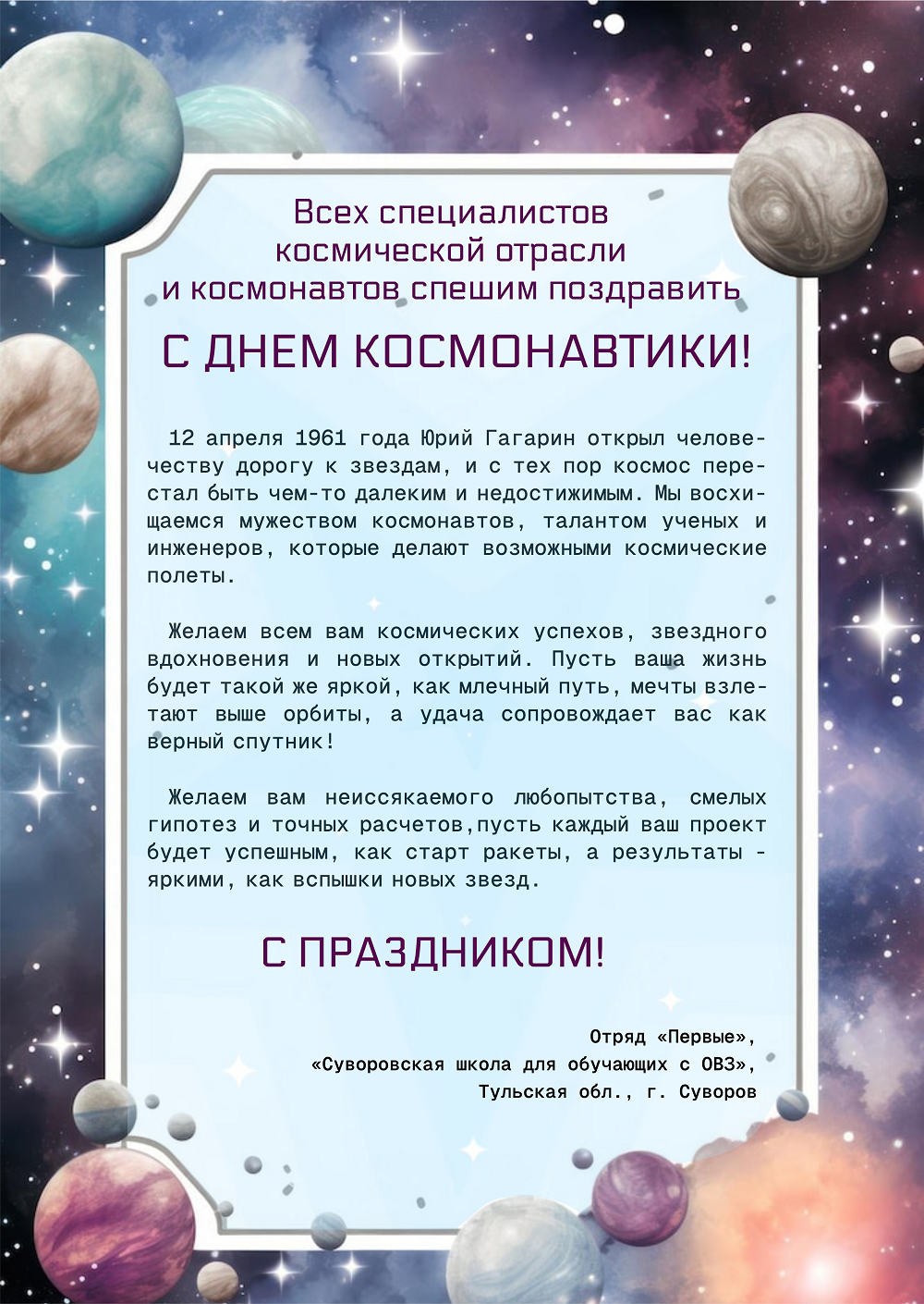 Поздравление с Днем космонавтики (2026)